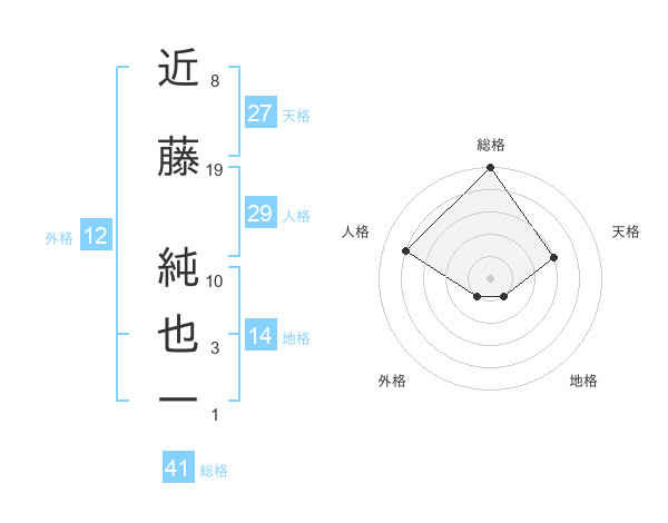 近藤 純也一さんを姓名の画数から五運を鑑定