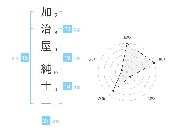 加治屋 純士一さんの総格は37画の5点