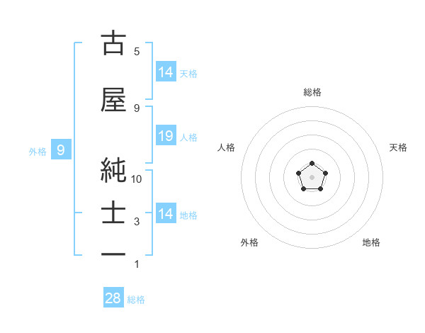 古屋 純士一さんの総格は28画の1点!
