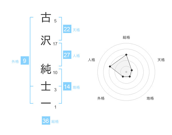古沢 純士一さんを姓名の画数から五運を鑑定