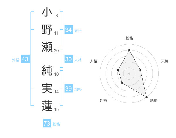 小野瀬 純実蓮さんの総格は73画の4点