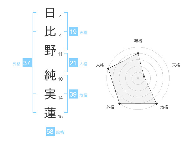 日比野 純実蓮さんを姓名の画数から五運を鑑定