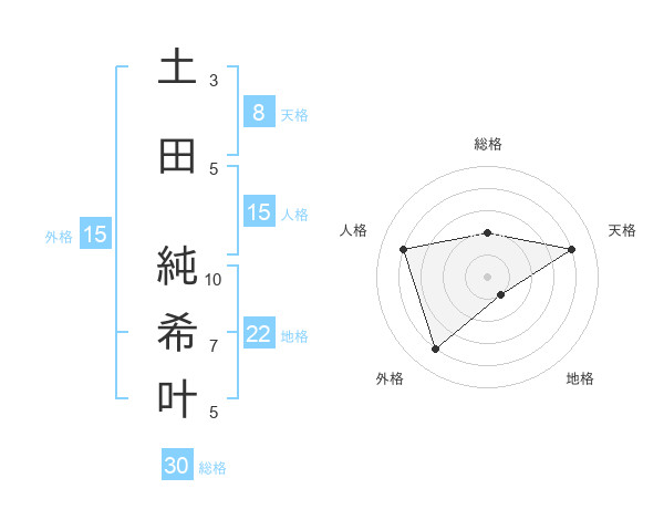 土田 純希叶さんを姓名の画数から五運を鑑定