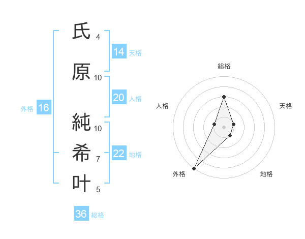 氏原 純希叶さんを姓名の画数から五運を鑑定