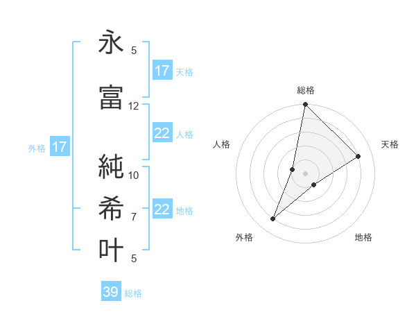 永富 純希叶さんの天格は17画の4点!