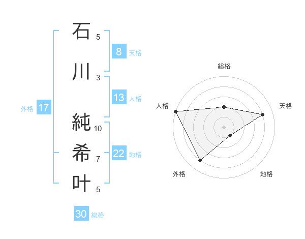 石川 純希叶さんの地格は22画の1点