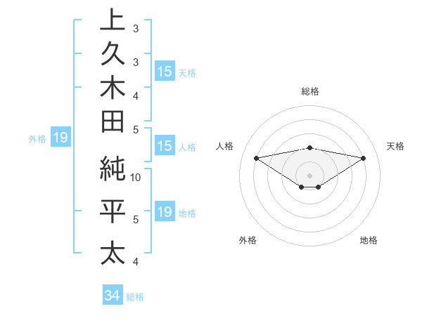 上久木田 純平太さんを姓名の画数から五運を鑑定