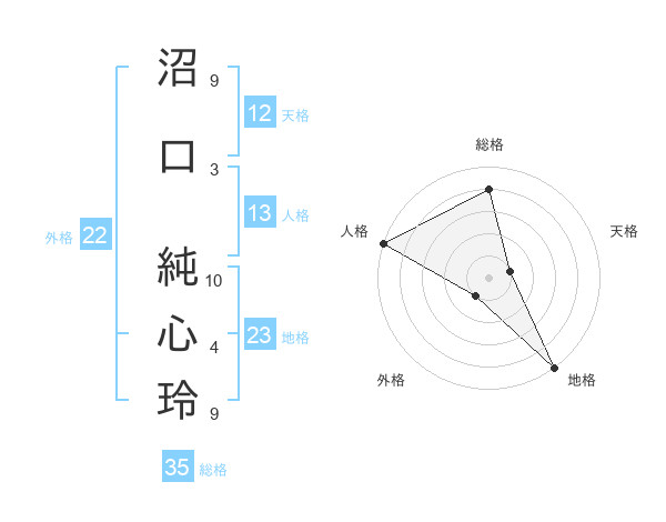 沼口 純心玲さんを姓名の画数から五運を鑑定