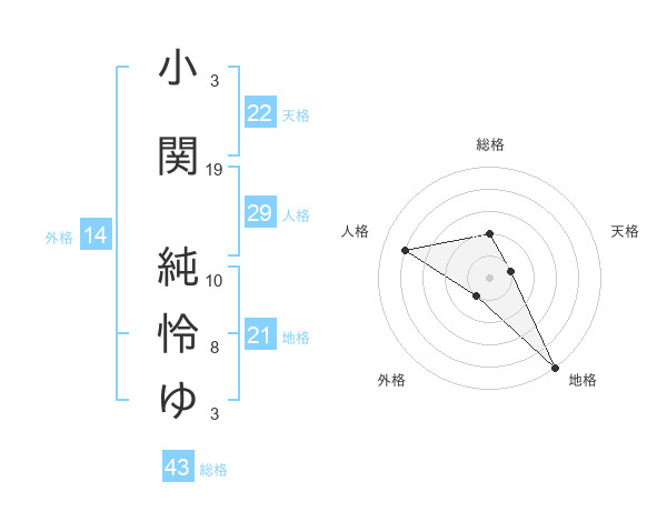 小関 純怜ゆさんの天格は22画の1点