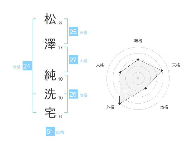 松澤 純洗宅さんの総格は51画の3点!