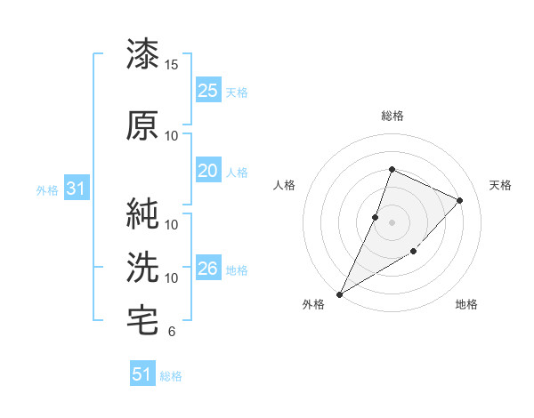 漆原 純洗宅さんを姓名の画数から五運を鑑定