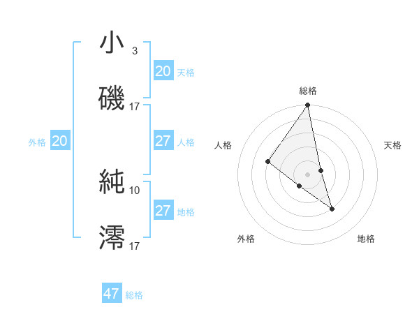小磯 純澪さんの総格は47画の5点!