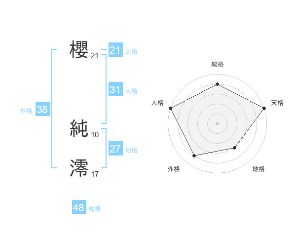 櫻 純澪さんの天格は21画の5点!