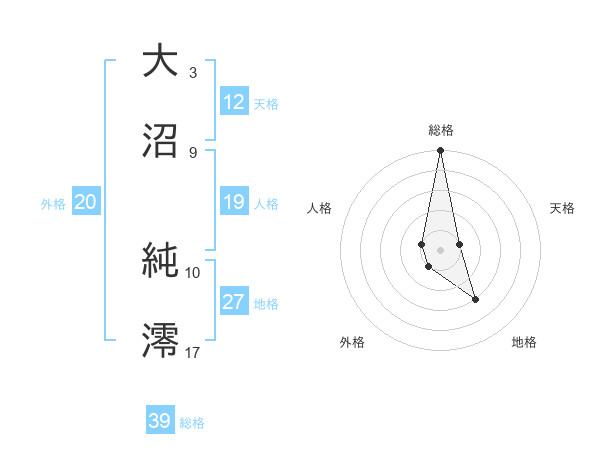 大沼 純澪さんを姓名の画数から五運を鑑定