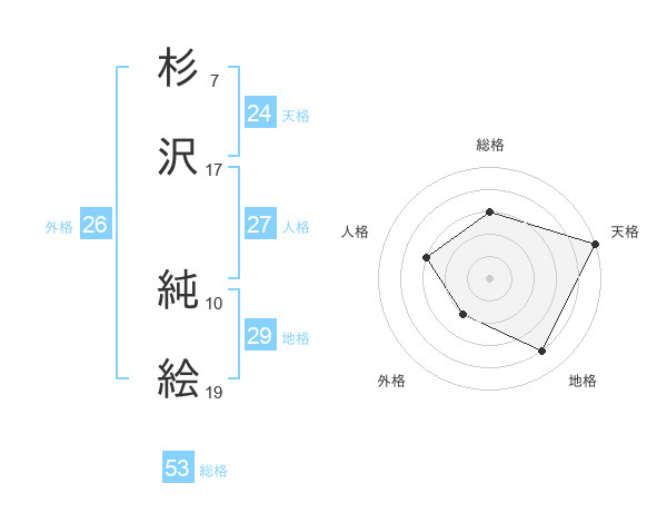 杉沢 純絵さんを姓名の画数から五運を鑑定