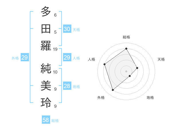 多田羅 純美玲さんを姓名の画数から五運を鑑定