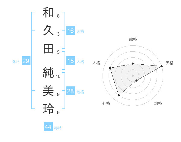 和久田 純美玲さんを姓名の画数から五運を鑑定