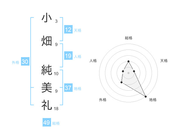 小畑 純美礼さんを姓名の画数から五運を鑑定