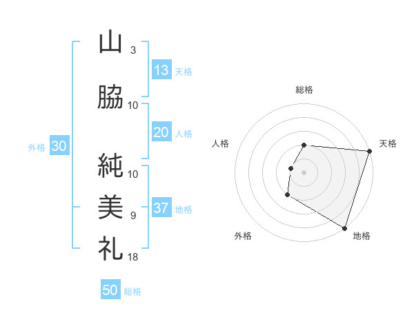 山脇 純美礼さんの天格は13画の5点!