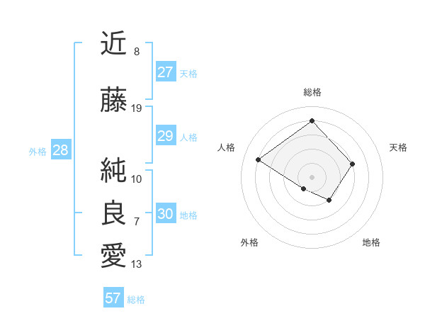 近藤 純良愛さんを姓名の画数から五運を鑑定