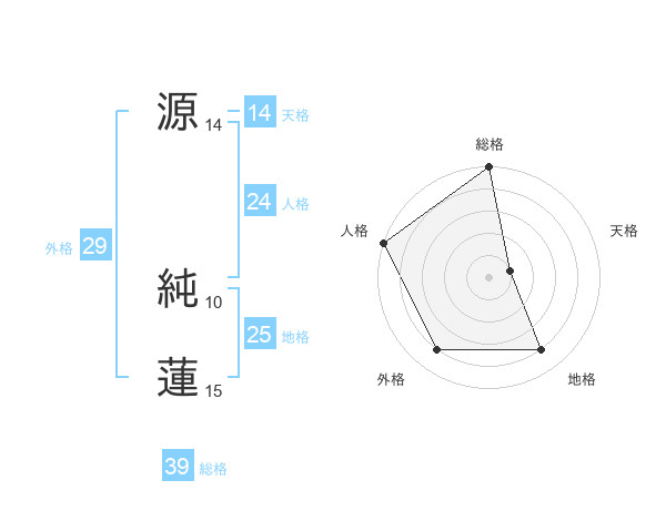 源 純蓮さんの総格は39画の5点!