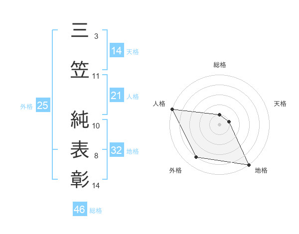 三笠 純表彰さんを姓名の画数から五運を鑑定