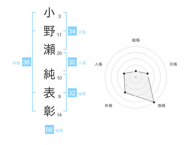 小野瀬 純表彰さんの総格は66画の1点