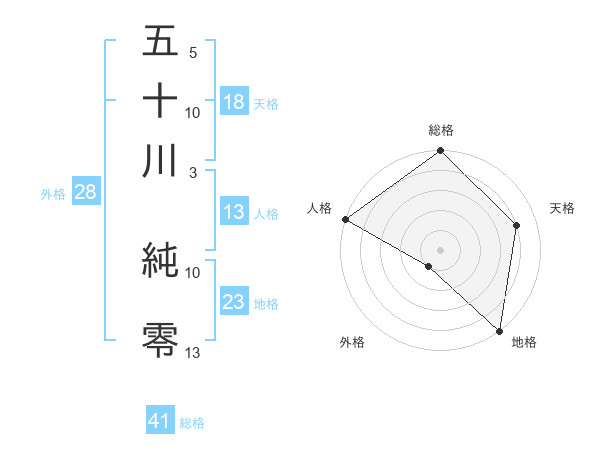 五十川 純零さんの総格は41画の5点!