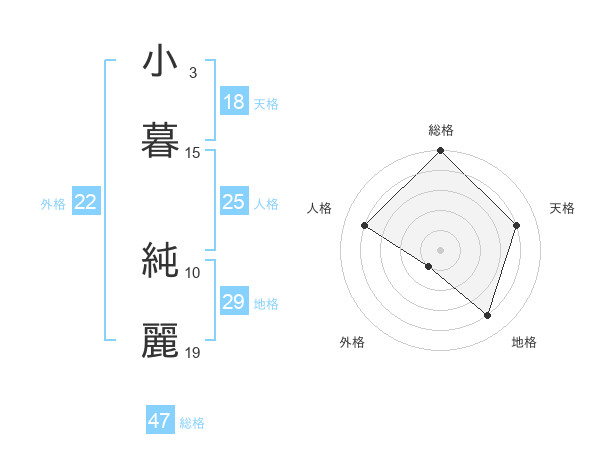 小暮 純麗さんの総格は47画の5点!