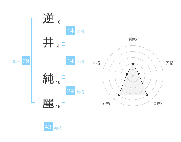 逆井 純麗さんを姓名の画数から五運を鑑定