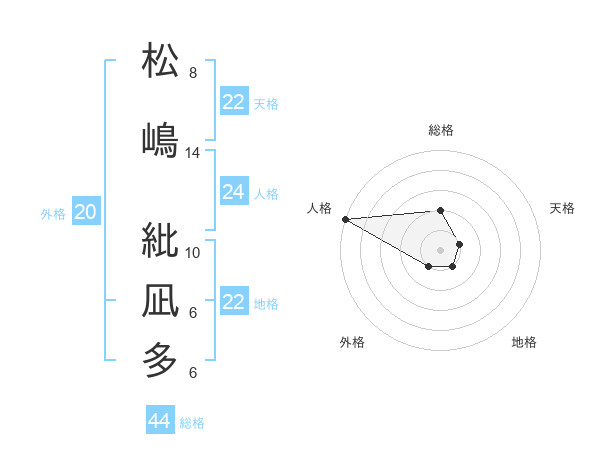 松嶋 紕凪多さんを姓名の画数から五運を鑑定