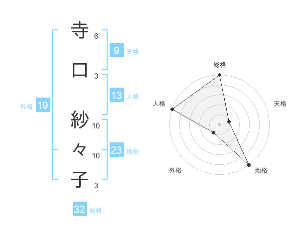 寺口 紗々子さんを姓名の画数から五運を鑑定