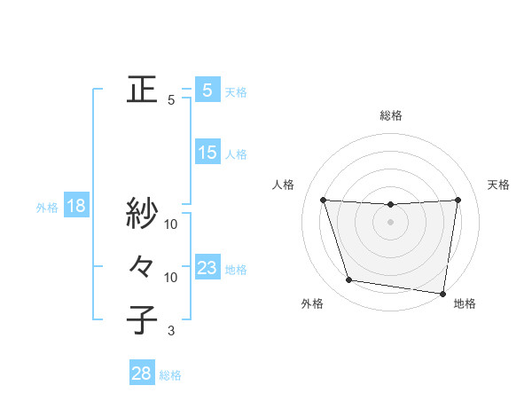正 紗々子さんの天格は5画の4点!