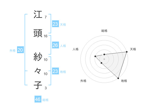 江頭 紗々子さんを姓名の画数から五運を鑑定