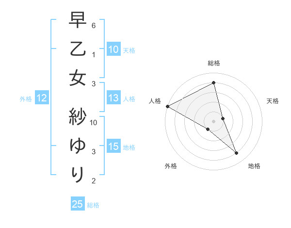 早乙女 紗ゆりさんを姓名の画数から五運を鑑定