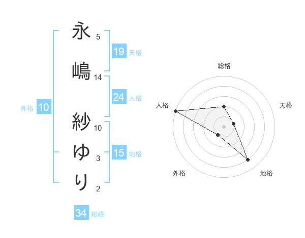 永嶋 紗ゆりさんを姓名の画数から五運を鑑定
