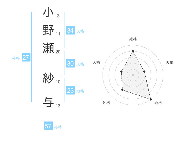 小野瀬 紗与さんを姓名の画数から五運を鑑定
