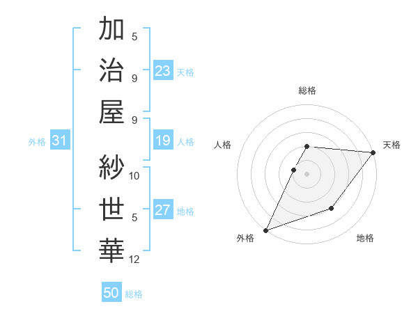 加治屋 紗世華さんを姓名の画数から五運を鑑定