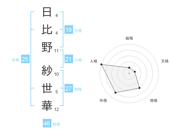 日比野 紗世華さんの天格は19画の1点!