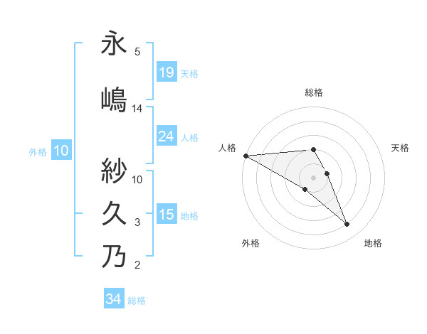 永嶋 紗久乃さんの総格は34画の2点!