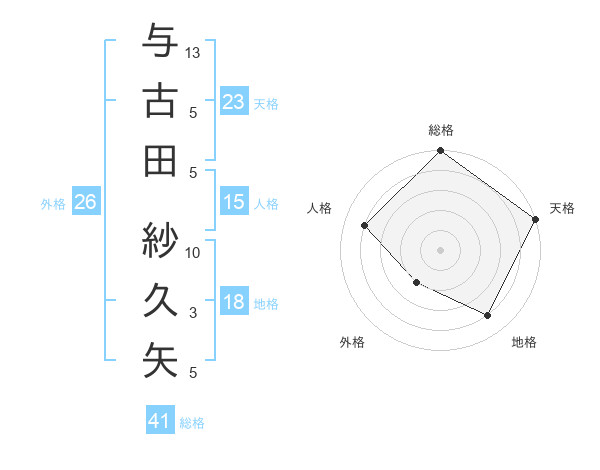 与古田 紗久矢さんの天格は23画の5点!