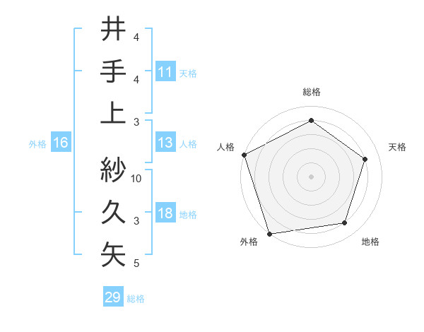 井手上 紗久矢さんを姓名の画数から五運を鑑定