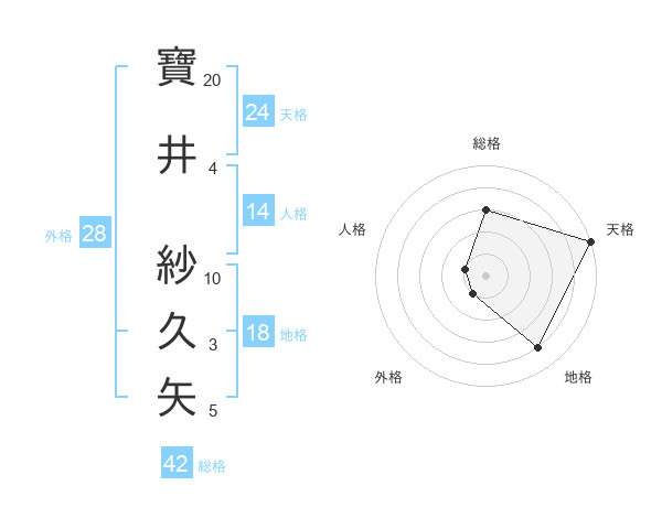 寶井 紗久矢さんを姓名の画数から五運を鑑定