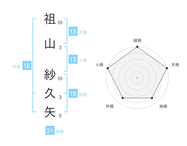 祖山 紗久矢さんを姓名の画数から五運を鑑定