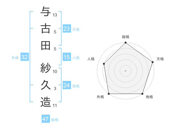 与古田 紗久造さんの総格は47画の5点!