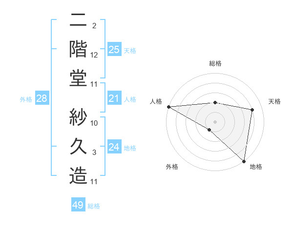 二階堂 紗久造さんの天格は25画の4点!