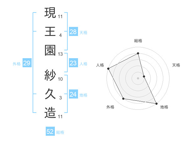 現王園 紗久造さんを姓名の画数から五運を鑑定