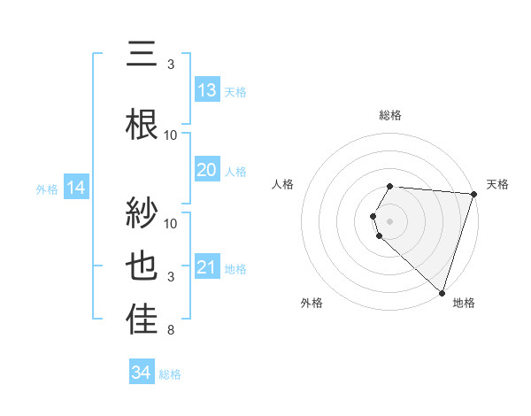 三根 紗也佳さんを姓名の画数から五運を鑑定