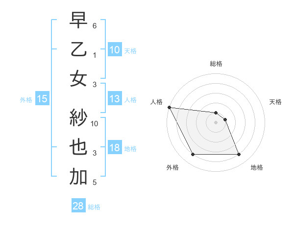 早乙女 紗也加さんを姓名の画数から五運を鑑定
