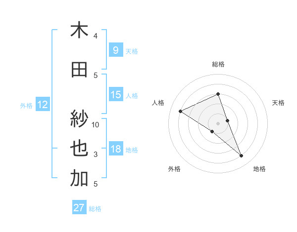 木田 紗也加さんを姓名の画数から五運を鑑定